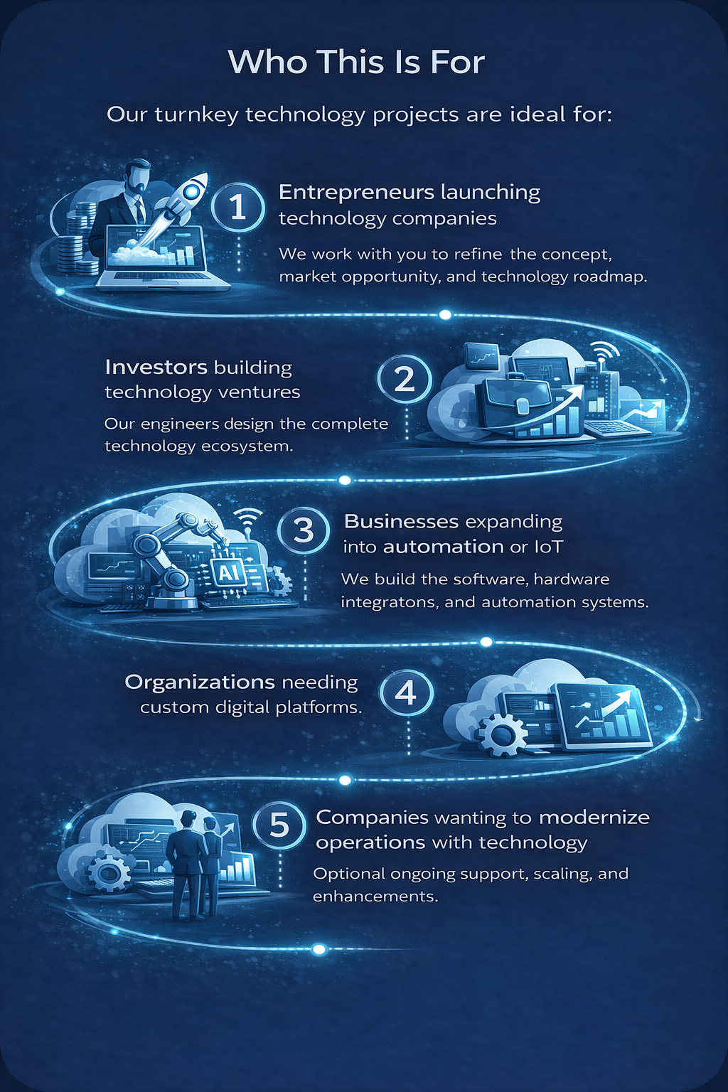 Custom platforms for industries such as: